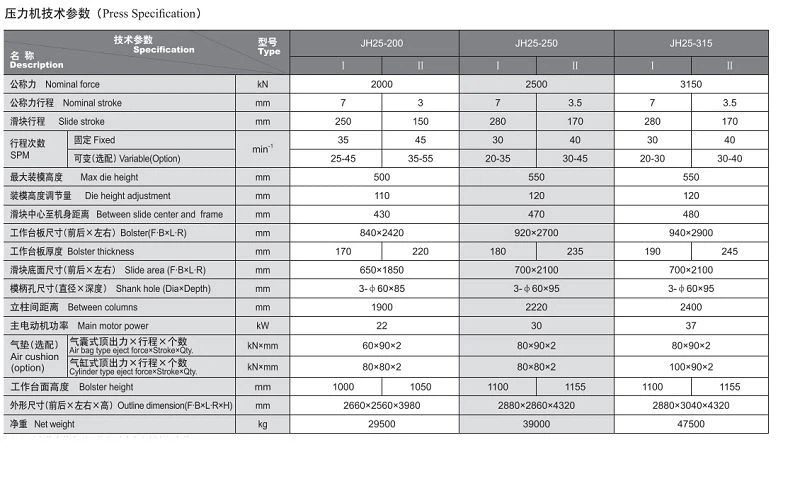 Ption বিকল্প: এয়ার কুশন (এয়ার ব্যাগ বা সিলিন্ডারের ধরণ), হালকা পর্দা, স্লাইড নকআউট ডিভাইস, অটোমেশন ডিভাইস।