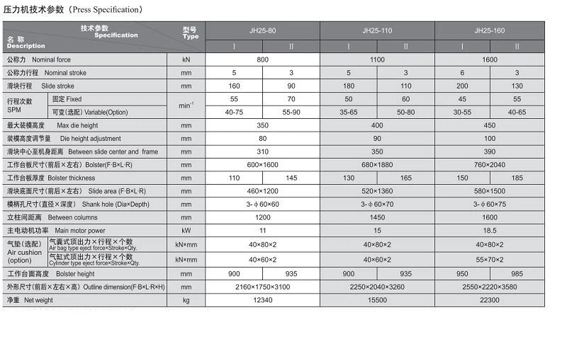 উচ্চ পারফরম্যান্স সহ জেএইচ 25 সিরিজ দুটি পয়েন্ট বড় বিছানা প্রেস